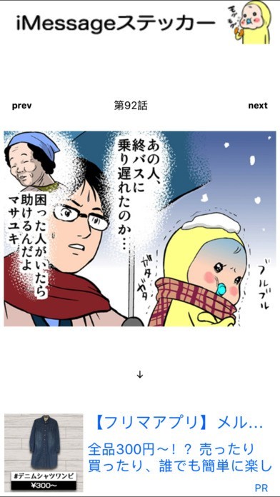 ボタンをタップする簡単操作で前後の話へ移動可能