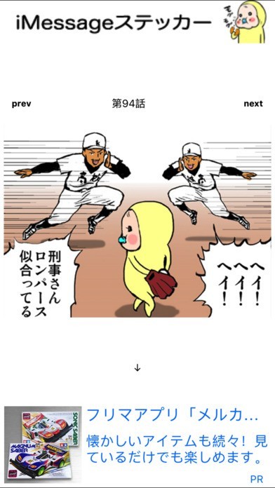 めめたんがお茶目な刑事として大活躍する4コマ漫画がアプリで楽しめます。四コマ漫画なので縦スクロールでサクサク読み進めていけるのが魅力です。アプリならではのメリットとしてはスクロールするまでは落ちの部分が見えないので、4コマ目が先に目に入ってしまってがっかりするということがありません。また、画面の下に表示されているボタンをタップすることで前後の話へと移動することが可能です。気に入った4コマがあればいいねをすることもできます。
