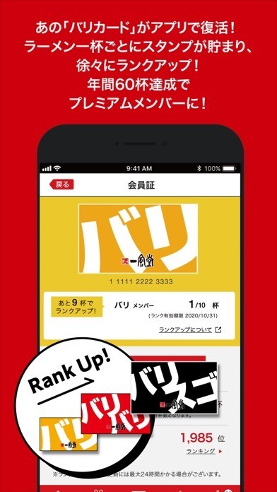 1. 紙のポイントカード時代のランクアップ制度がアプリで復活!ランクアップごとにお得な特典アリ。