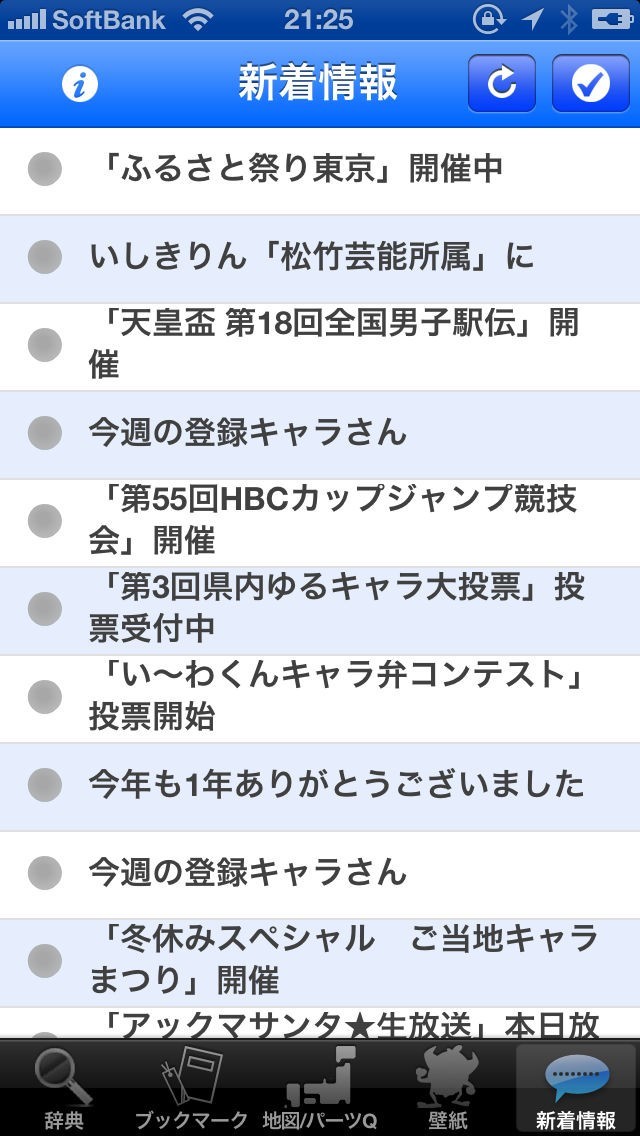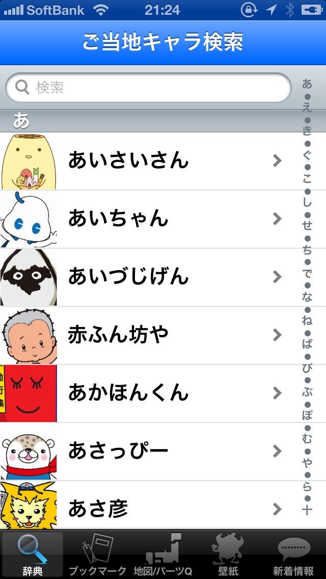 ポータルサイト『ご当地キャラ情報局』の最新イベント情報から最新情報を入手可能。ご当地キャラ達のプロフィールをキャラ辞典としてパワーアップ、パーツ検索、場所検索機能が追加。
