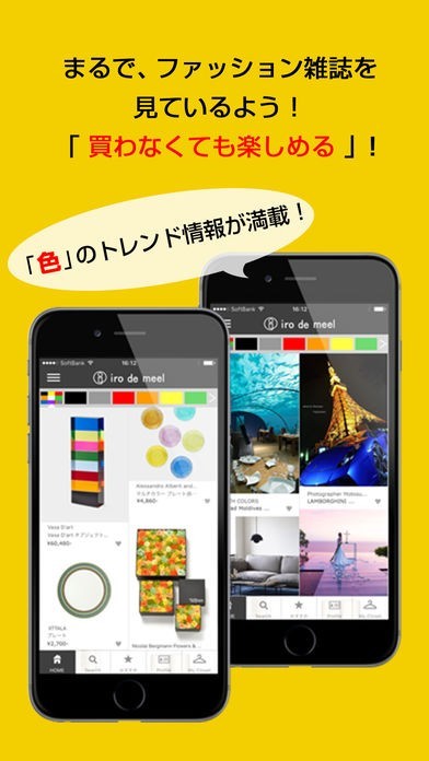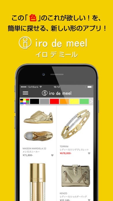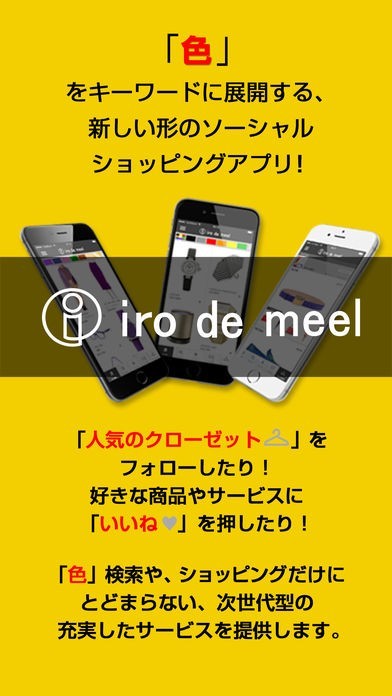 iro de meel(イロ デ ミール)は、あなたの好きな色、欲しい色の商品を無料で探すことのできるアプリです。