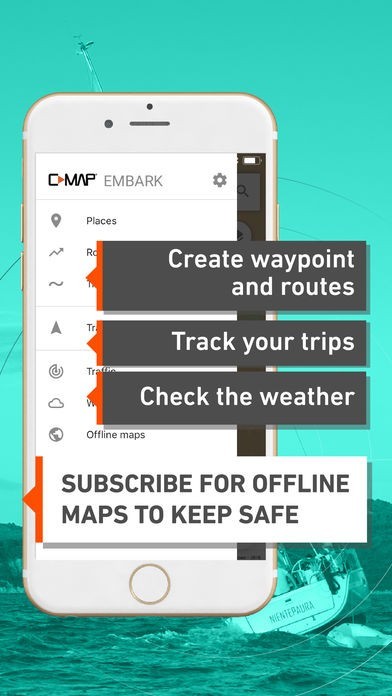 App Storeより引用C-Map Embark provides high-quality nautical maps along with navigation, traffic and weather information to help you plan your next trip on the water.