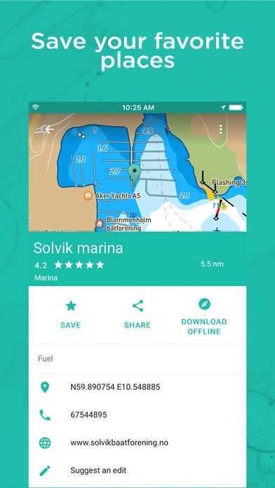 • Personalize your own maps: highlight areas of the map based on your boat size, use your favourite units of measurement, create places routes and tracks