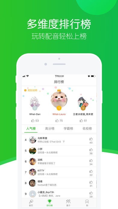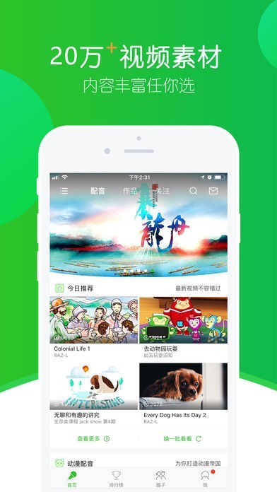 2.【全新方式】摆脱枯燥传统的学习方式,通过配音学习英语、提升口语听力。配音打分、生词翻译、作品分享,随时随地玩转配音!