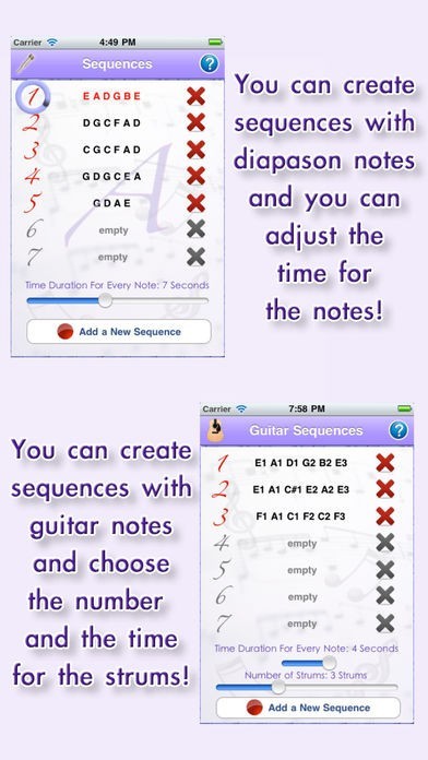 「i Diapason Pro / i Guitar Pro - 音叉やギターで耳で楽器をチューニング」には、便利なスケール自動再生機能が搭載されています!最初に簡単な設定をしておけば、調弦したいスケールの音を設定した秒数ずつ慣らしてくれるので、同時に1弦ずつチューニングする事が出来ます!