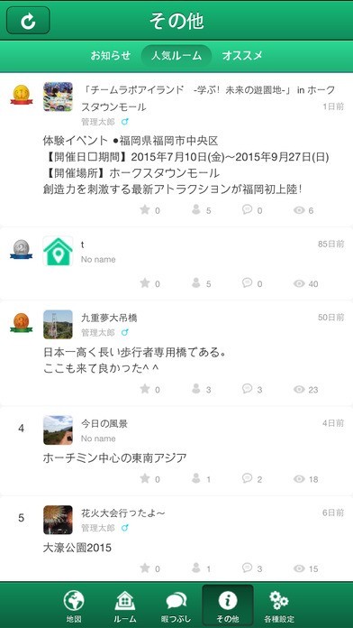 「ルーム」では、お仲間と情報交換をしたりすることができ、生きた情報を入手できる!