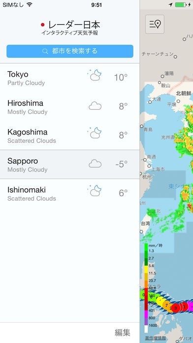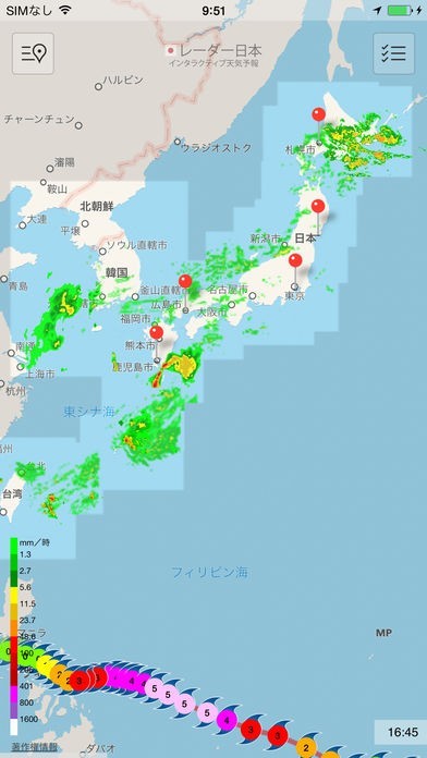 正確な情報で、降水降雪などの予報がわかり、台風発生時には、その進路も詳細に表示されるので、いざというときの防災のためにも、手軽に使える天気レーダーアプリとして重宝します。