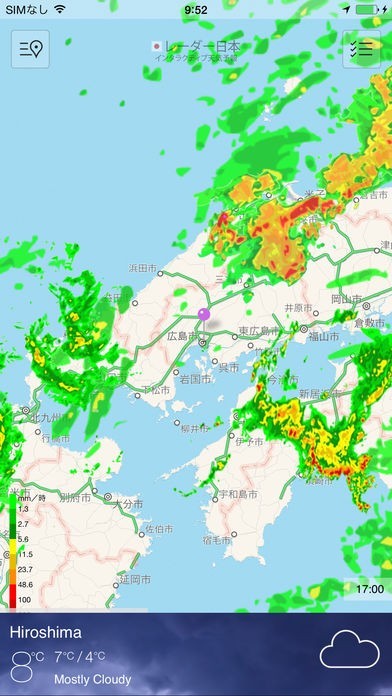 雨雲など各種レーダーのチャート表示で見た目ですぐわかる