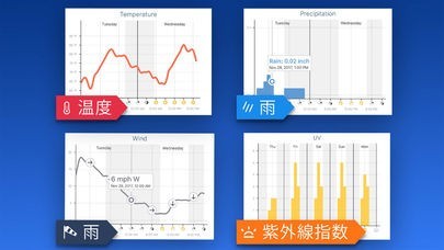 気温や紫外線も一目でわかる便利な予測チャート機能