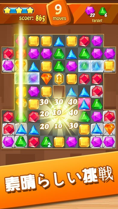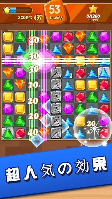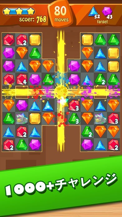 指で同じ色の宝石を3個なぞって揃えて消していくだけ!