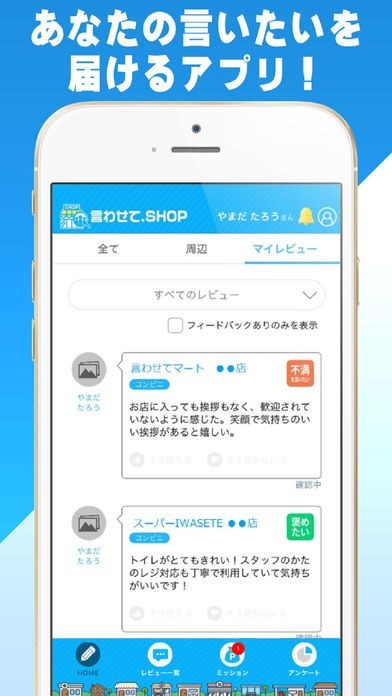 【言わせて.SHOP】は飲食店・コンビニ・スーパー・アミューズメント施設・美容院など日本全国にある多種多様なお店への口コミアプリです!!