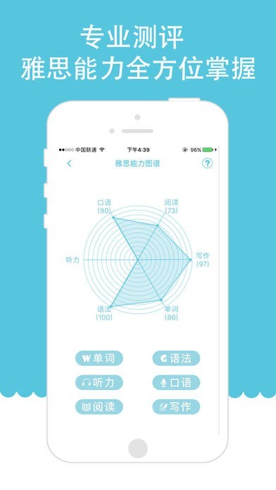 单词,语法,听力,阅读,写作,口语六大模块全方面测试你的真实雅思英语水平。