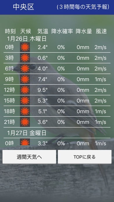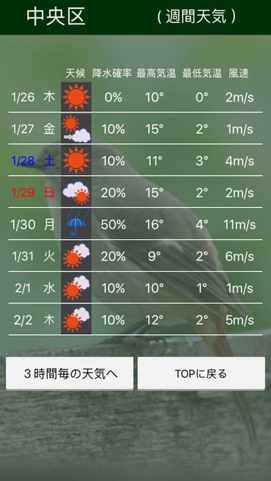 App Storeより引用天気予報を見ながらバードウォッチング気分!