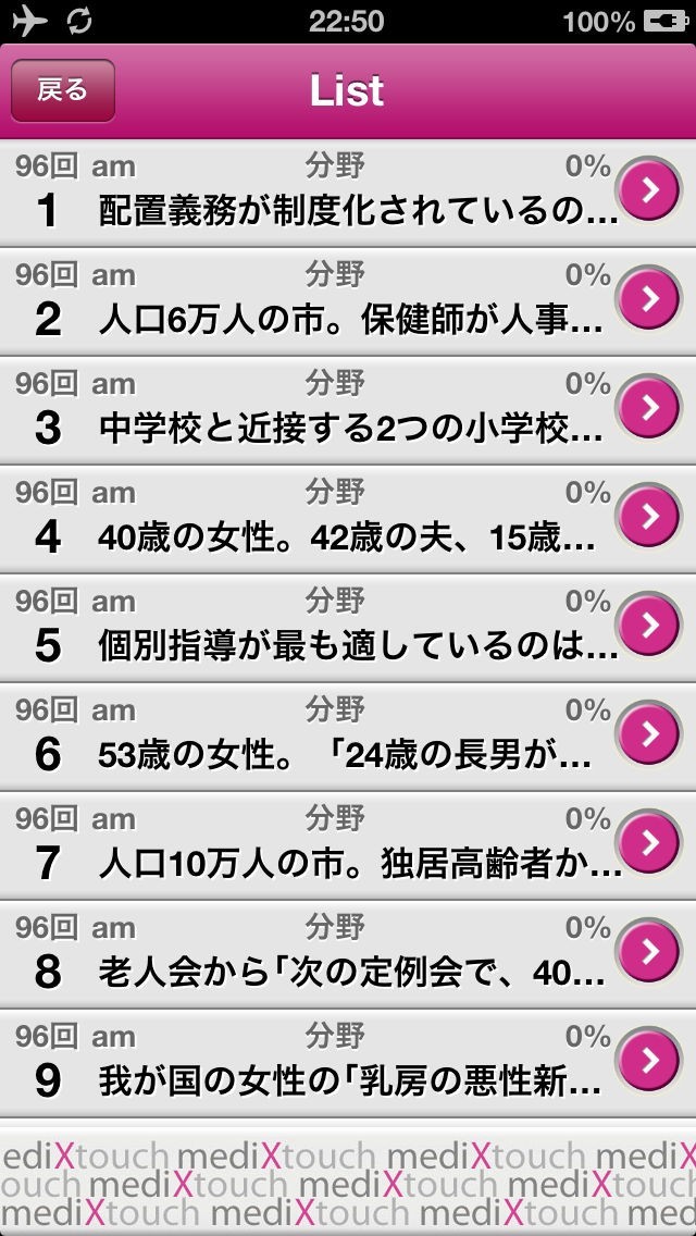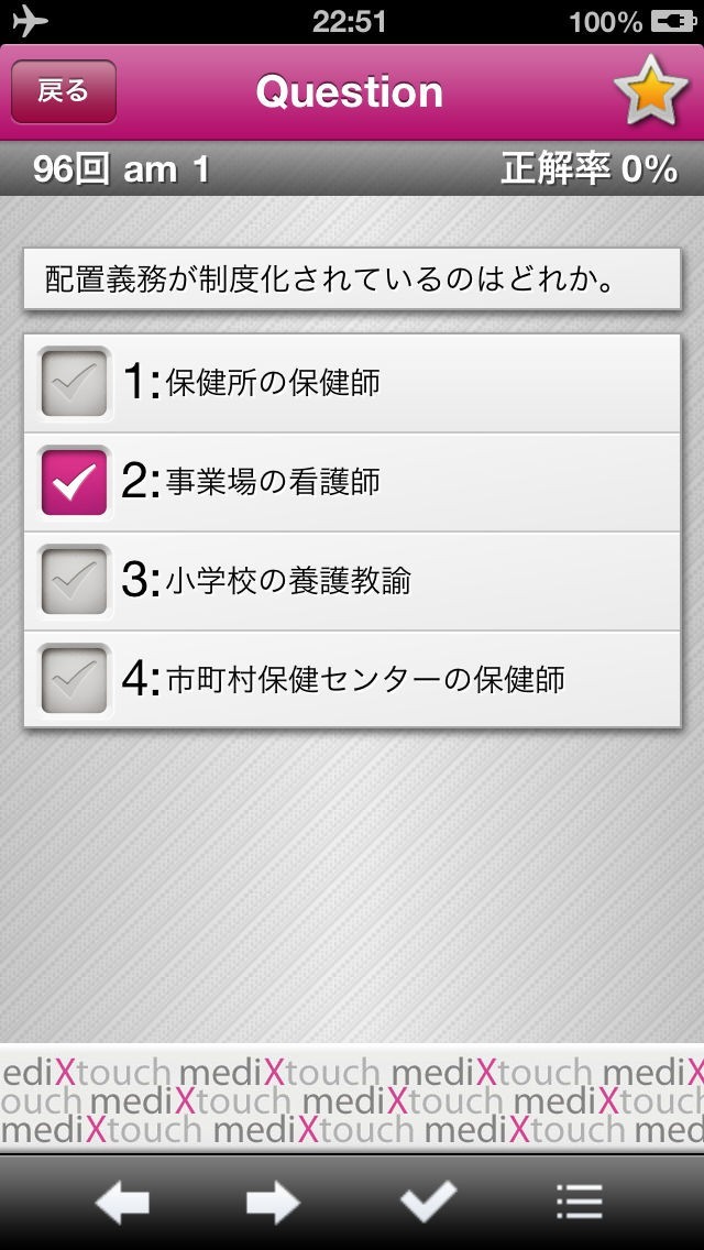保健師を目指す方必見! 保健師のための国家試験対策が行えるアプリとして、過去問題を多数収録しており、勉強に役立つ機能も満載です! 「保健師国家試験 medixtouch free」では分野ごとに分けて過去問題を出題。アプリ上で問題に答えながら、正否を確認することもできます。 収録された過去問は第90回から96回のものとなっており、問題をきちんと理解しているかどうかの理解度なども表示可能。 自分の勉強がどれぐらい進んでいるのかを意識しながら、スムーズに勉強が進められるようにサポートしてくれます!