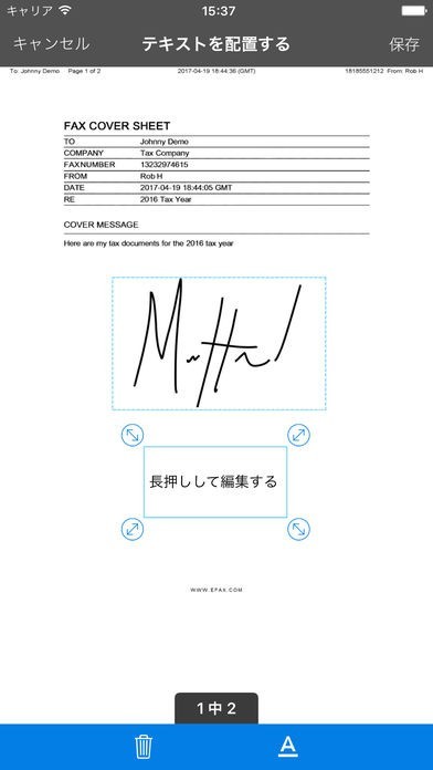 スマートフォンは持っているけれど、固定電話機を持っていないのでファックスを送受信することができないという人でもファックスを利用することができるようになるアプリが「eFax (イーファックス)」です。スマートフォンを使ってファックスを送受信することができるようになるだけでなく、スマートフォンの画面をスワイプすることで好きな場所に署名などを行うこともできるようになっているほか、GoogleドライブやDropboxへデータを保存することもできます。