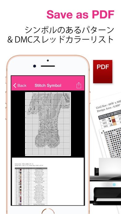 作成したデザイン図案はPDFファイルで自分のデバイスに保存ができます。さらに印刷機能もついているので、すぐにオリジナルのクロスステッチの作成にうつることができます。