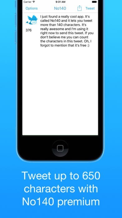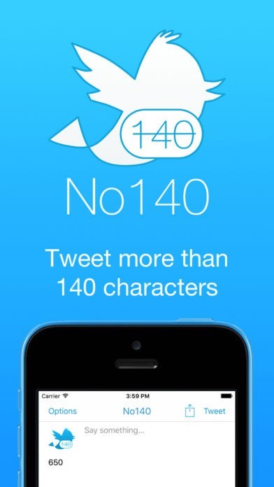 App Storeより引用Have you ever wanted to tweet more than 140 characters? No140 lets you do just that. With No140, you can tweet up to 650 characters.
