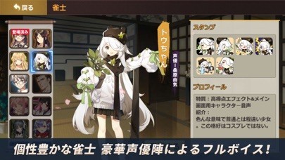 姉御肌で大人の魅力に溢れる雀荘の女将、引きこもりで気が難しい天才少女、麻雀をすると「神憑り」になる謎の巫女、女流プロゲーマーの生放送主など、個性豊かな雀士たちと一緒に麻雀を楽しもう!