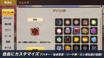 卓背景や牌のデザイン、リーチ棒、手の装飾(ネイルや指輪)、対局中の各種演出など、変更可能な装飾品は100点以上!麻雀を楽しみながらコレクション要素も充実!