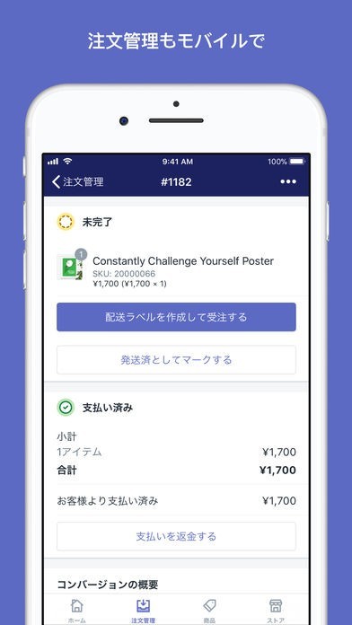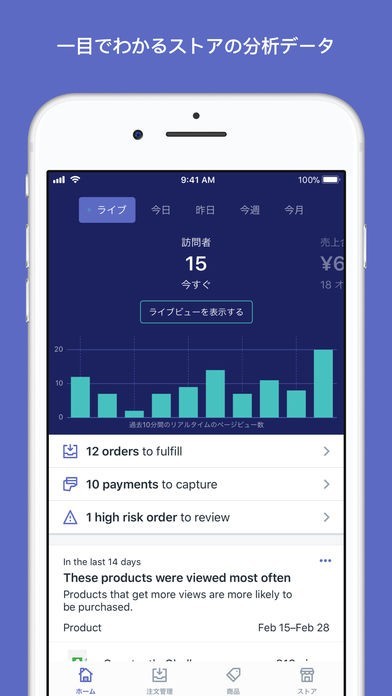 App Storeより引用どこからでもビジネスを運営しましょう。このアプリがあれば、Shopifyストアをいくつお持ちでも、注文と商品の管理、スタッフとの連携、販売追跡が簡単にできます。