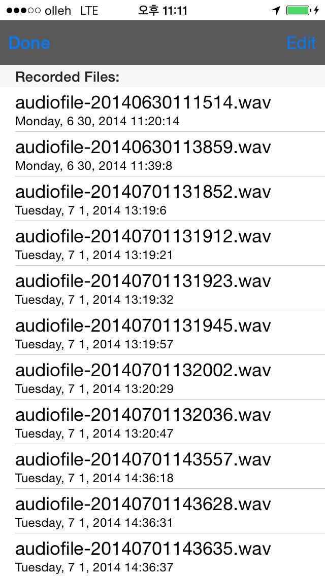 After you capture your sound, you can start playback by tapping the play button to the right of the record button immediately or by selecting one saved file in the list of wave files.