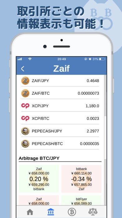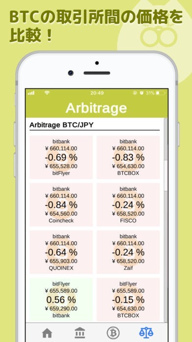 App Storeより引用Cryptopippi(クリプトぴっぴ)は仮想通貨のアービトラージ(裁定取引)に役立つリアルタイム価格比較アプリです。