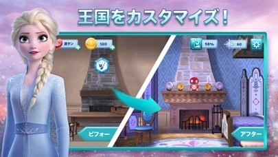 エルサ、アナ、オラフと一緒にパズルを解いて報酬を集めると、アレンデールの王国をカスタマイズできます! 雪の結晶を沢山あつめて、お城をデコレーションしましょう。