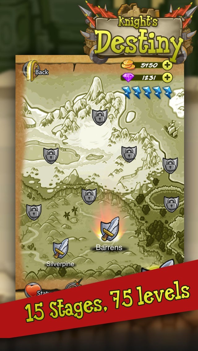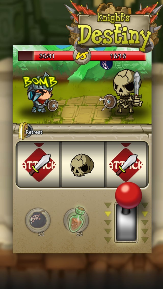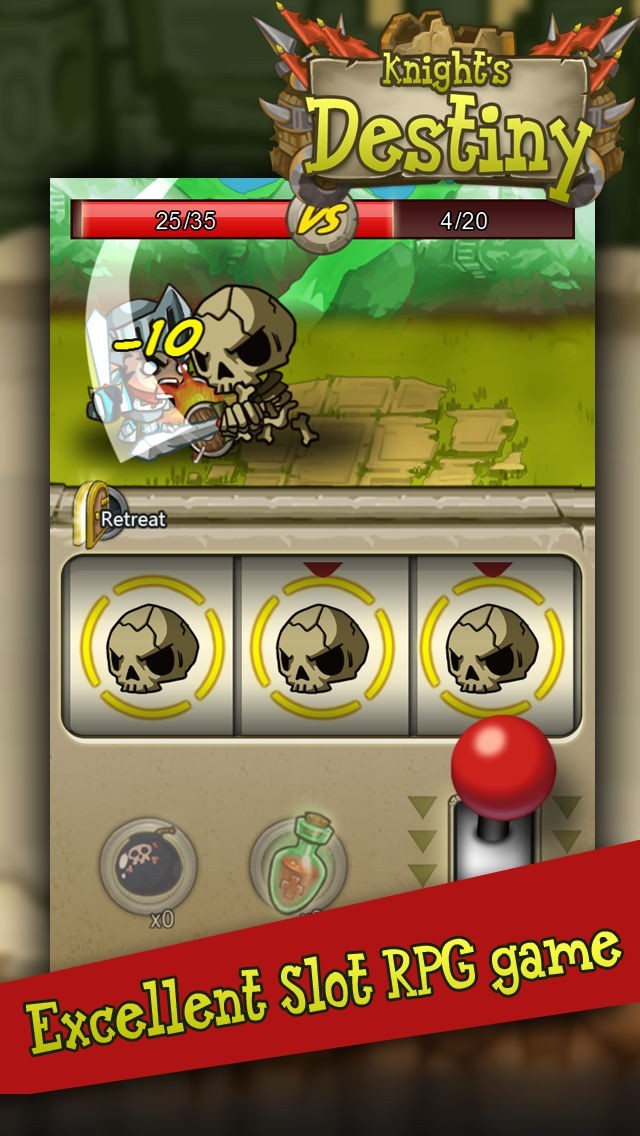 App Storeより引用Knight's Destiny is a excellent Slot/RPG game with unique art and addicting gameplay. Immerse yourself as a knight in a virtual fantasy world where magic is all around and bizarre creatures roam the land.