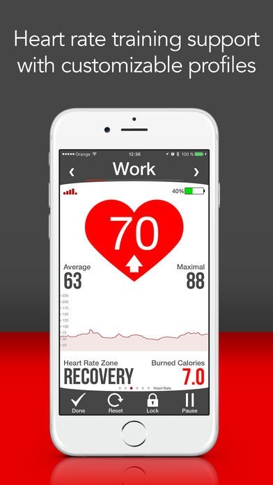 Another great feature is support for heart rate training using a Bluetooth LE heart rate monitor. User can create multiple profiles and switch between them. Heart rate training profile contains all settings for your training like heart rate zones and notification options. During exercising user can be notified about current heart rate and zone. One heart rate zone can be selected as target zone. Voice coaching can notify the user to adjust tempo to stay in current zone.