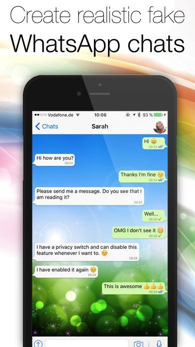 Agent for WhatsAppでは様々なプロフィール画像なども使用可能でリアルな偽のチャット画面を作成することができ、設定変更も自在です。作成したチャット画像はSNSで共有することも可能です。