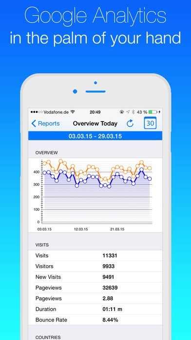 With Analytics for Google Analytics we are proud to introduce the first powerful Google Analytics™-app for iPhone and iPad. It makes viewing your Google Analytics™ data faster, easier and much more enjoyable than ever before.