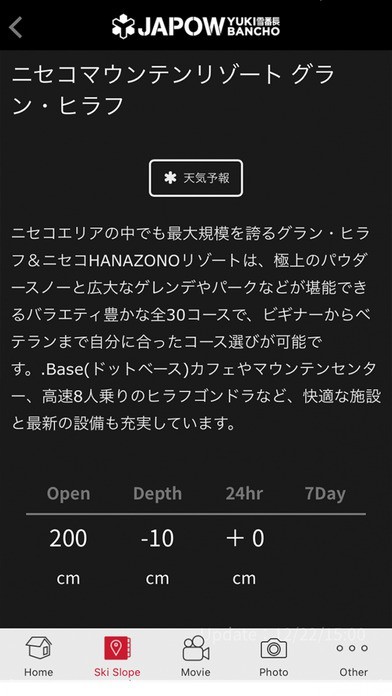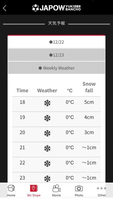 日本全国のスキー場に対応!当日の天気や降雪量を表示出来るスマホアプリ