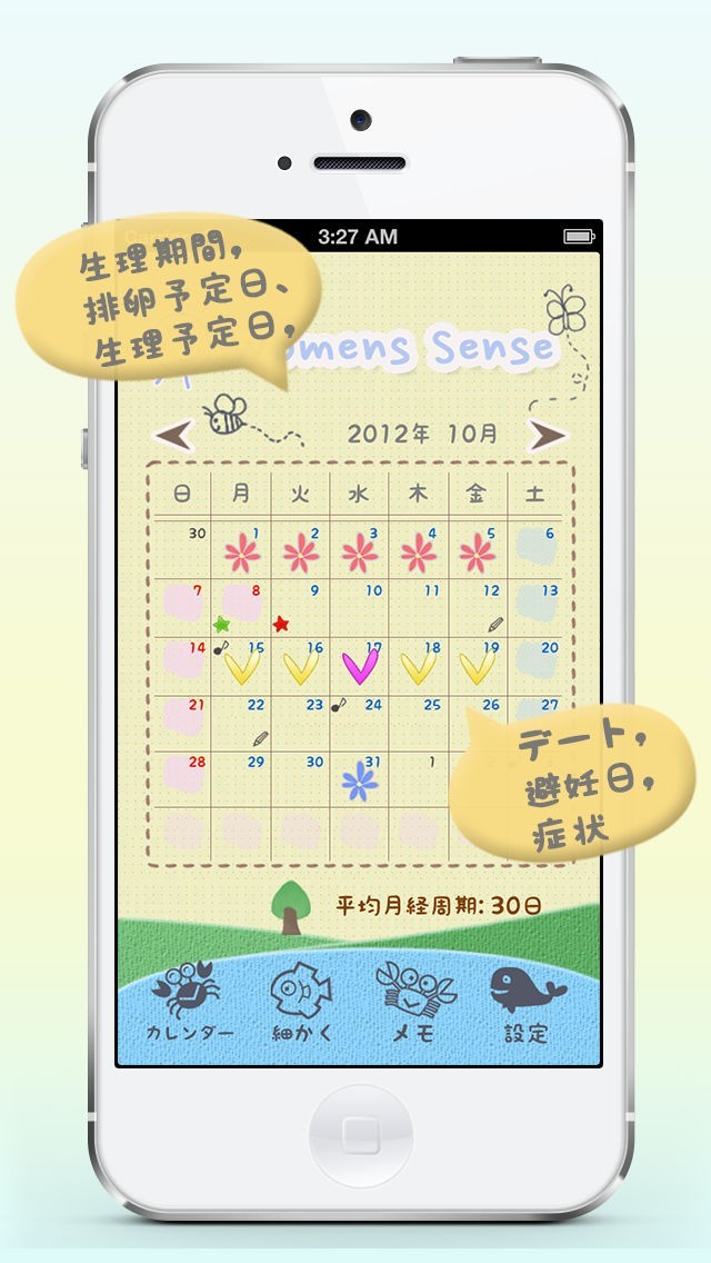 App Storeより引用*自動に妊娠可能日と生理日を予測