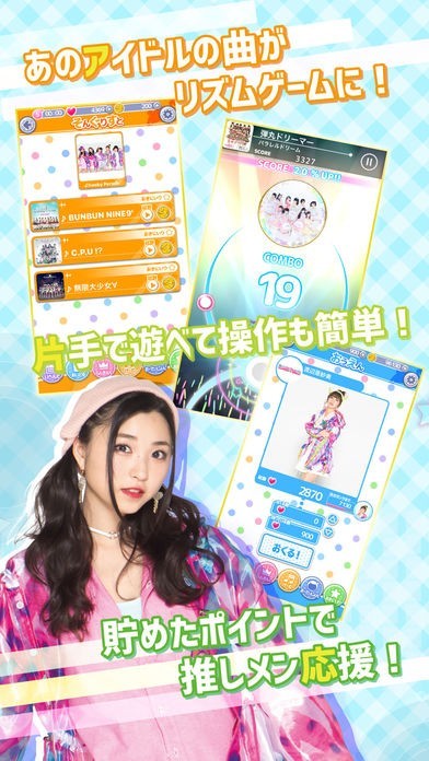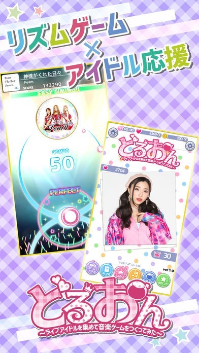 ゲームをやり込むことで本物のアイドルを応援することができる新感覚ゲームです。高得点を出してアイドルの順位をアップさせてください。どるおんに登場するアイドルもどんどん増えます。好きなアイドルを見つけましょう。