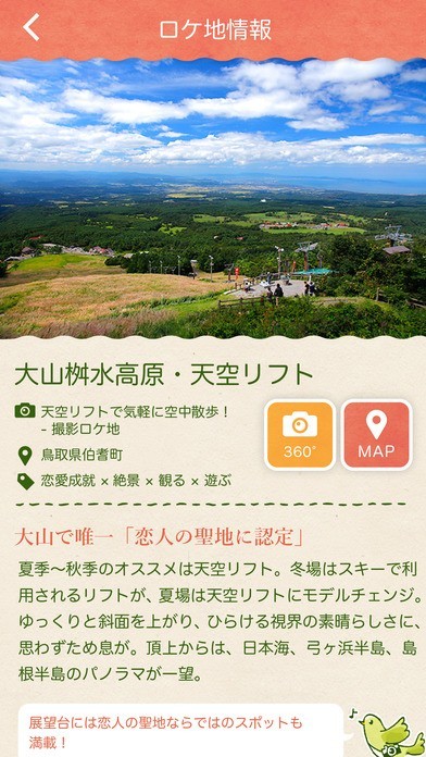 田舎の風景をVRで楽しむことができるアプリです。全天球VR動画、全天球VR静止画、パノラマ静止画の3種類が用意されています。田舎をリアルに感じることができるので、都会では得られない癒し体験ができます。 撮影ロケ地の情報も載っているので気に入った場所には実際に行ってみることができます。現地ではロケ地を巡るスタンプラリーが開催されていて、ARも活用されています。スタンプを集めるとクーポン券がもらえたり、プレゼント抽選に参加できます。