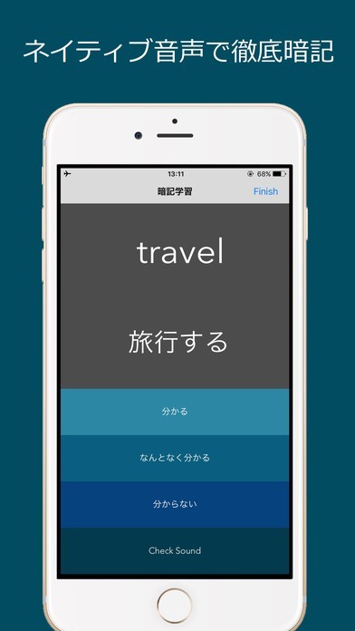 一般的な英単語教材はスペルを見ながら1つずつの語彙を確認していきますが、このアプリでは英語の音声を聞き、単語の理解度を振り分けたり、相応しい日本語を選択するという形式を採用しているため、単語の意味を覚えながら同時にリスニング対策、発音・アクセント対策をすることも可能です。またネイティブの音声を採用しているため、日本人特有のカタカナ英語を抜け出し、将来、グローバルに活躍するための基盤を構築する事もできます。