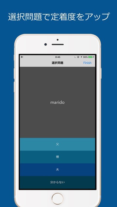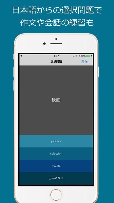 外国語をマスターするためには、単語の暗記は欠かせません。このアプリでは、ただ単に意味を覚えられるだけでなく、正確な発音も学習することができます。リスニング問題が収録されているので、耳からスペイン語をマスターしましょう。