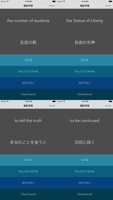 TOEIC600点台を目指す英語学習アプリとして、毎日の勉強をサポートしてくれる選択問題機能などを用意。出題にタップで答えるシンプル操作ながら、多彩な単語を収録し、毎日コツコツ利用することで学習レベルを底上げしてくれます。リスニングモード機能も搭載しており、音声による英単語の再生なども可能。正しいアクセントで再生される英文を聞くことで、自分のアクセントとの差を確認することもできるでしょう。また、簡易語彙検索機能を利用すれば、単語を暗記するだけではなく言葉の意味と合わせて習得できるのが嬉しいポイント。丸暗記ではなく生きた英語として海外旅行などにも活用することができます。