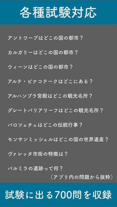 世界地理 各種試験対応:都市・観光名所・祭事・世界遺産のスクリーンショット