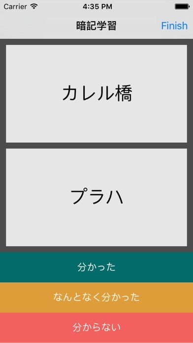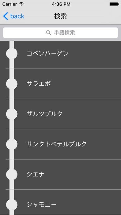 検索機能で単語から問題を検索することができます。あの都市はどこの国だったかな?などの疑問を持った時に、都市名を検索してすぐに問題と答えを確認することができます。