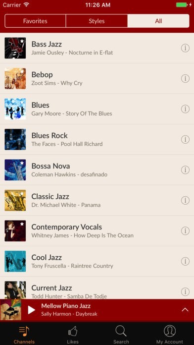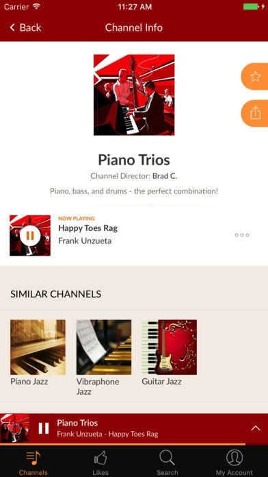 扱っているジャンルはジャズのみで、ラジオの局数は35以上あります。いつでもどこでも常にジャズを聴くことができ、音楽好きで常に大好きな曲をいつでも楽しみたい方に魅力的なアプリです。「Channels」からお好きなものを選べて、右上の星マークをタップすると、「Favorites」からすぐに再生できるので、気に入ったものをすぐに聴くことができます。また、ジャケットと曲名が表示されていることから、ジャケ買いならぬジャケ聴きをすることができるので、興味深いものがあればすぐに視聴可能です。他にも、FacebookやTwitterでチャンネルを共有することができるため、同じものを聴いている方とコミュニケーションをとって仲良くなれます。 加えて、「プレミアム版」を利用すると、広告表示がなくなり、音質も良好になります。