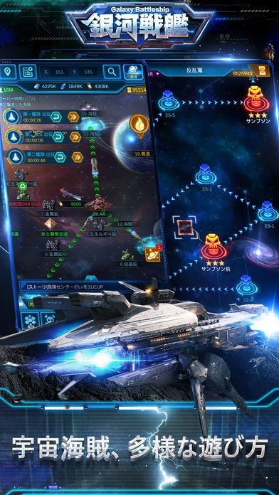 「銀河戦艦-ギャラクシーバトルシップ」は広大な宇宙において、星の統治者となって勢力の拡大を目指すスペースファンタジーゲームアプリになります。世界中のプレイヤーと戦争をしたり、同盟を結んだり駆け引きしながら進めることができるほか、基地を発展させたり、宇宙海賊になったりといったさまざまな楽しみ方が可能です。