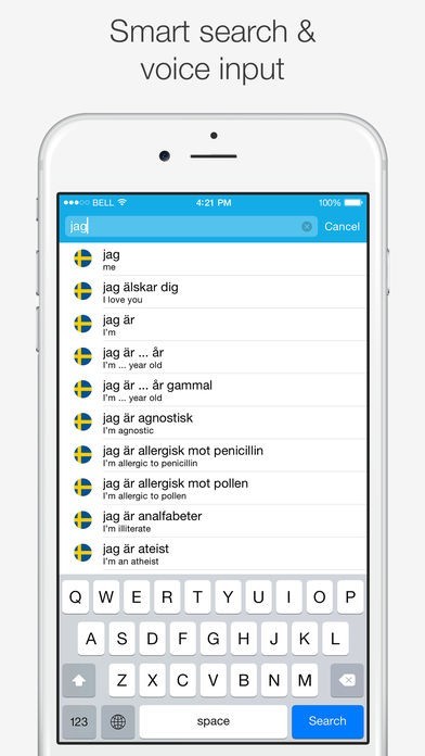 Whether you're a student, tourist or bussiness traveler, this speaking Swedish-English bi-directional Dictionary helps you translate words quickly and easily.