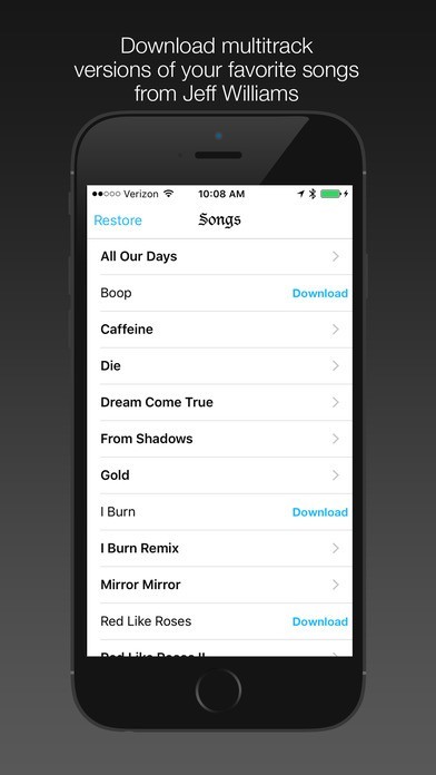 App Storeより引用8 Tracks is a multi-track music App which allows you to purchase and download multitrack version of songs written by Jeff Williams for Rooster Teeth and RWBY. Hear the whole mix, or single parts, like vocals or drums. It's like being in the studio with the band! Then share with your friends via dropbox or soundcloud.