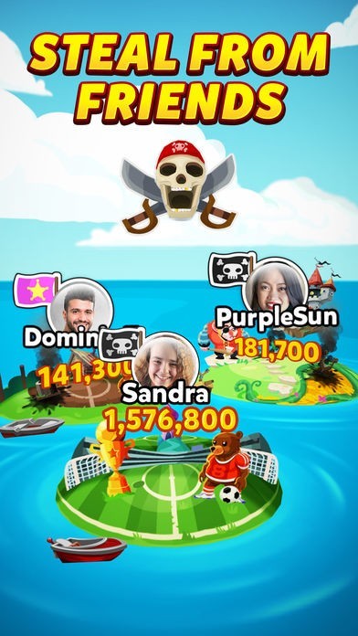 「PirateKings」は、海賊になって略奪を行うゲームです。他の海賊が所有する島を襲撃して、お金をためましょう。ヒミツの宝を見つけたり、ルーレットでためしたり、稼ぐ手段はいろいろあります。ためたお金は自分の島を発展さることにつかえますし、海賊船の装飾や強化にも使用可能。最初は1つだった自分の島も、どんどん増えていきます。他ユーザーの島の襲撃できますが、逆にこちらが襲われることもあるので注意。戦力を駆使して自分の仲間や島を守りましょう。