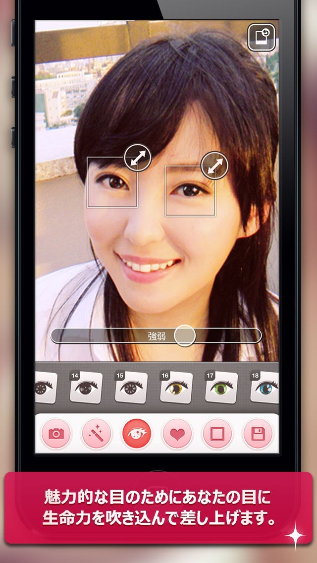 目元を自動判別して自然な美顔にしてくれる!肌荒れの修正やクマの除去も楽々!