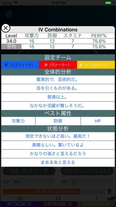 App Storeより引用このアプリでポケモンの IV を計算します。スマートの IV は、すべてのスナップショットからの情報を認識しています。スマートの IV では、次の機能を提供します。