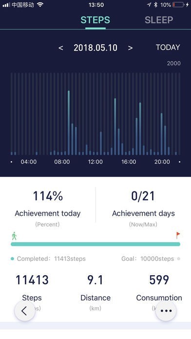- Show 24-hour exercise data, and total data by week and month, and trend statistics graph accordingly.