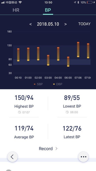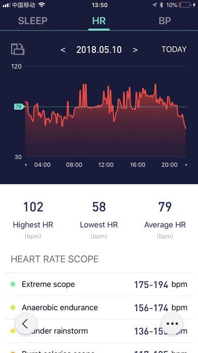 - Record daily actual data and scope about heart rate, list the top heart rate value, the lowest value, average data by day, week, month respectively.