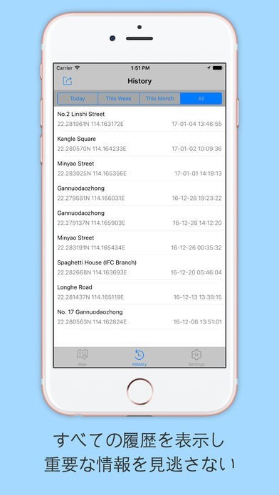 あなたはリアルタイムであなたの場所を表示し、場所の履歴を追跡することができます。